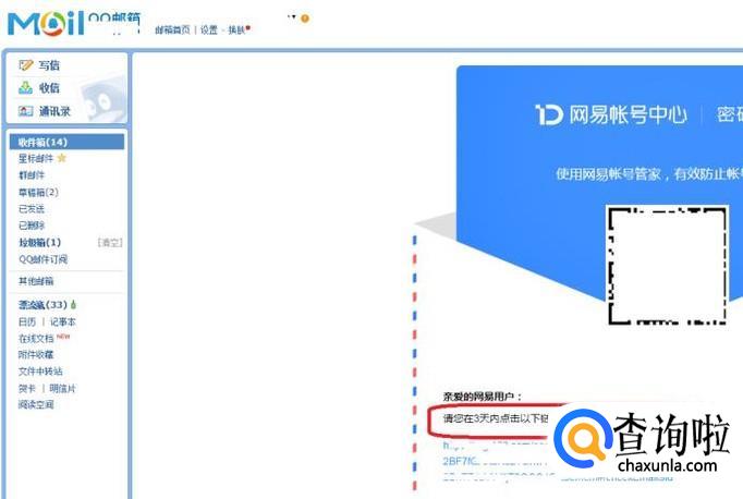 发送成功后,打开QQ邮箱,可以收到一条链接,如图所示,我们只要点击链接,就能修复网易通行证的登录密码了。