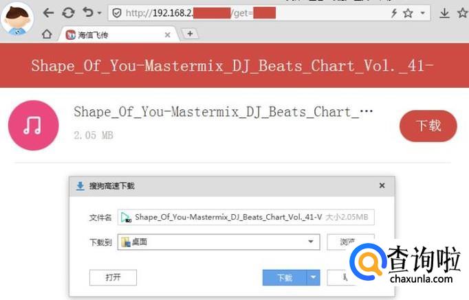 弹出下载框,选择好下载的路径,下载即可,比较方便,信息只通过局域网传输,可以起到一定信息保护的作用;