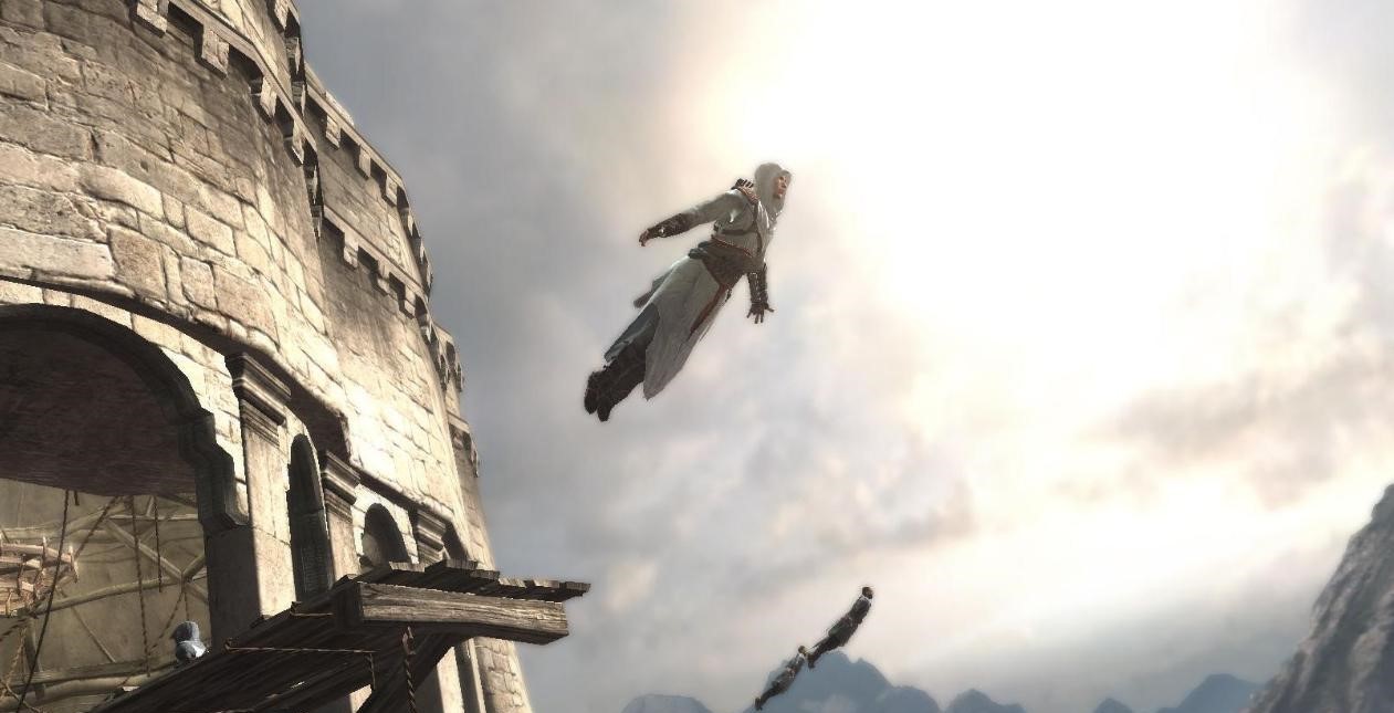 信仰之跃(Leap of Faith)是指《刺客信条》系列游戏中,从相当高的地方一跃而下,空中翻转270°,背朝下落入草堆中的一个动作,落下的过程中往往还伴随着鹰叫。