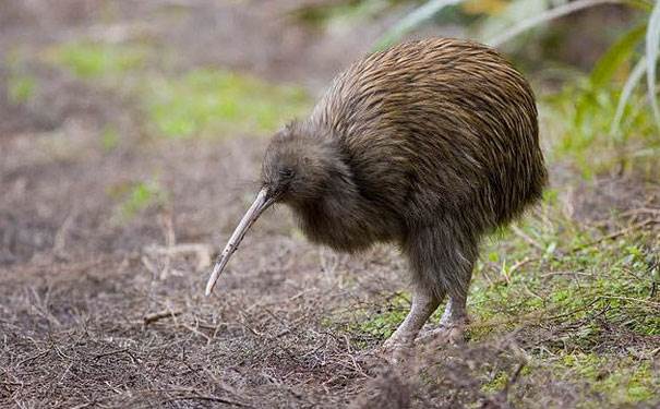 它形如梨子,浑身长满蓬松细密的羽毛,既没有翅膀也没有尾羽,不能飞翔。可是它的双腿却粗短有力,善于奔跑,时速可达10英里,发起脾气来还能将另一只同类鸟踢出5英尺外。几维鸟的身材小而粗短,嘴长而尖,腿部强壮,羽毛细如发丝,由于翅膀退化,因此无法飞行。寿命可达三十年,是新西兰的特有物种,也是新西兰的国鸟及象征。