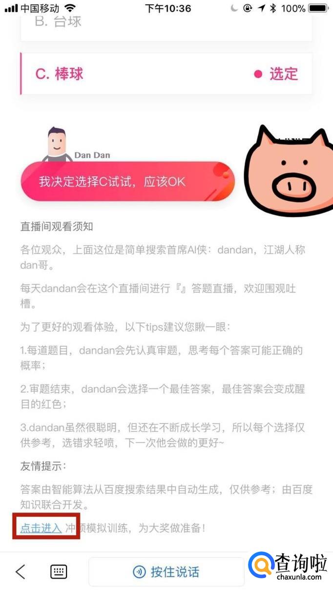 如果答题还没开始,你可以点击屏幕下方的“点击进入”参与模拟答题。