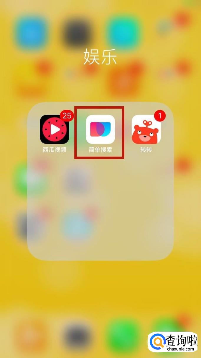 首先在我们的手机桌面上找到简单搜索,如下图所示。