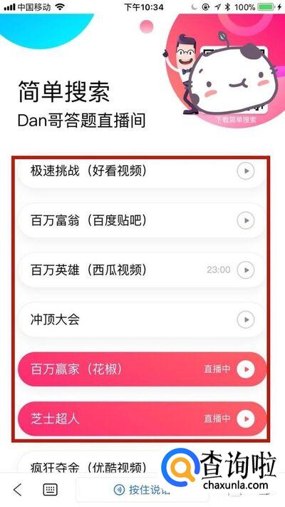 当答题开始以后,你可以在简单搜索中以最快的时间得到答案。