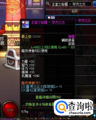 戒指部位,只需完成外传任务“梅尔文的高科技”,在任务奖励中,选择“高科技夜袭戒指”即可,【火遁·红莲】技能等级+1。