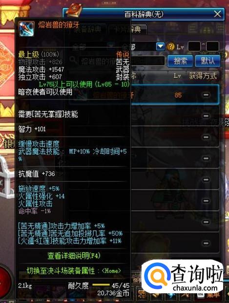 武器方面,可以选择85级传说苦无“熔岩兽的獠牙”,该武器可以提升11%的【火遁·红莲】技能攻击力增加率。