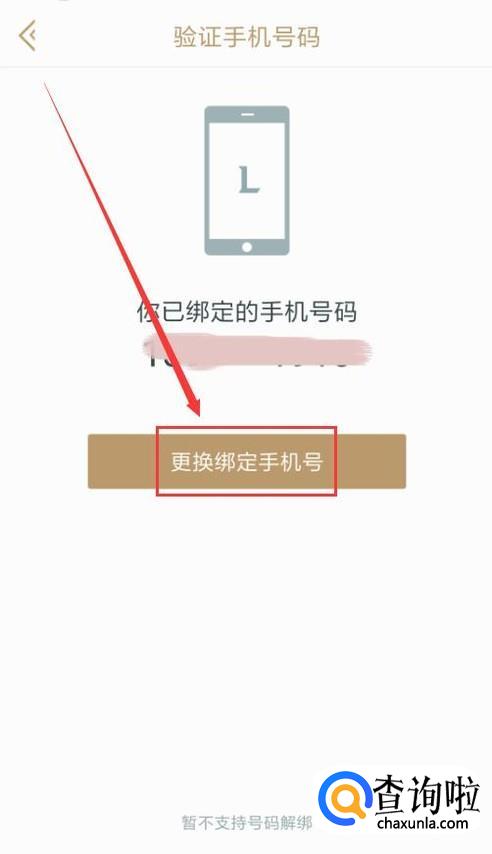 在“验证手机号码”界面,点击屏幕中的“更换绑定手机号”。