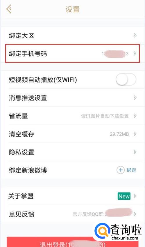 在“设置”界面找到“绑定手机号码”,点击进入。