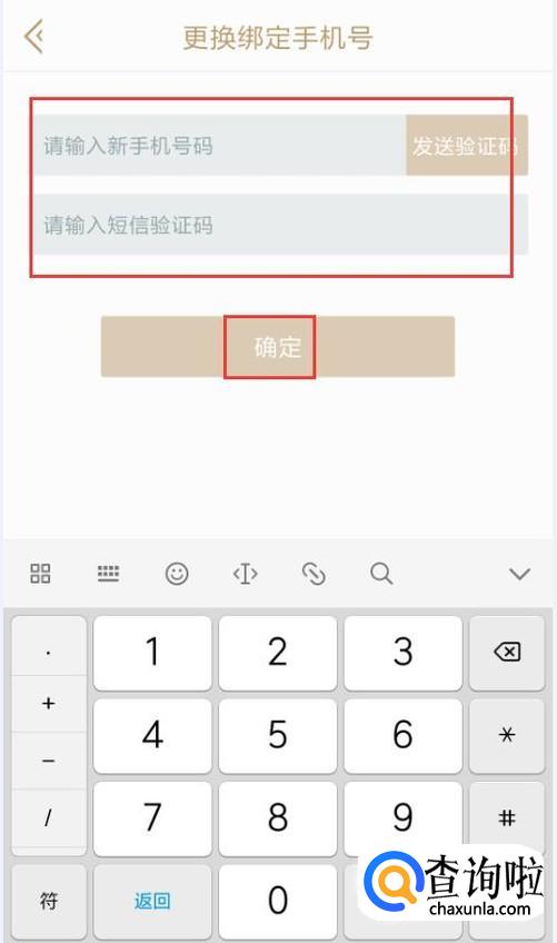 在“更换绑定手机号”界面输入改绑的新手机号,点击“发送验证码”,在下方输入框中输入收到的短信验证码,点击确定,手机号就更换好了。