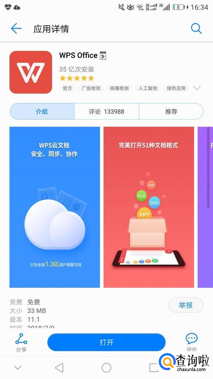 打开手机自带的软件市场,搜索WPS之后,下载并安装好WPS。