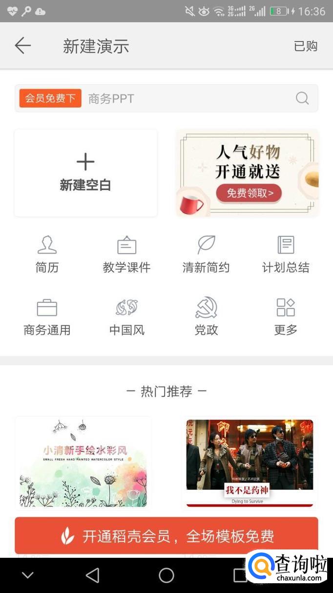 在这里你可以选择想要的PPT模板,如果不需要模板则点击左上角的“新建空白”按钮。