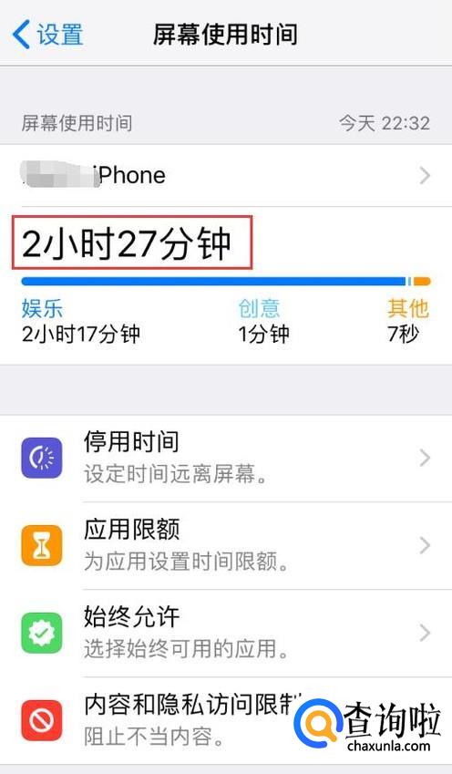 在“屏幕使用时间”界面中能查询当下手机屏幕已使用多久、最常使用以及拿起次数、通知次数等。