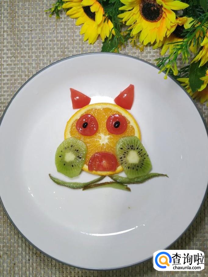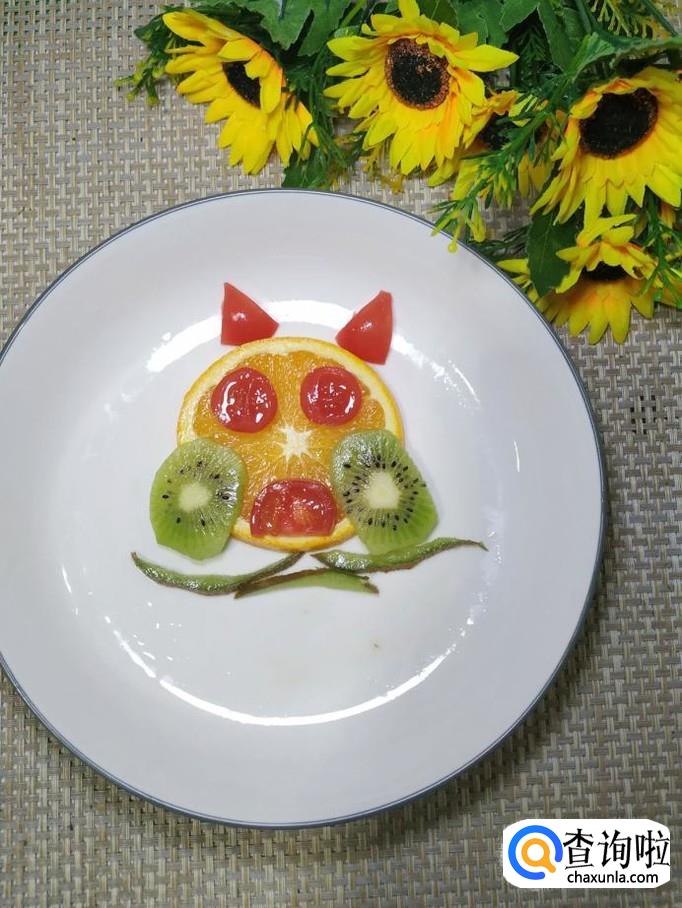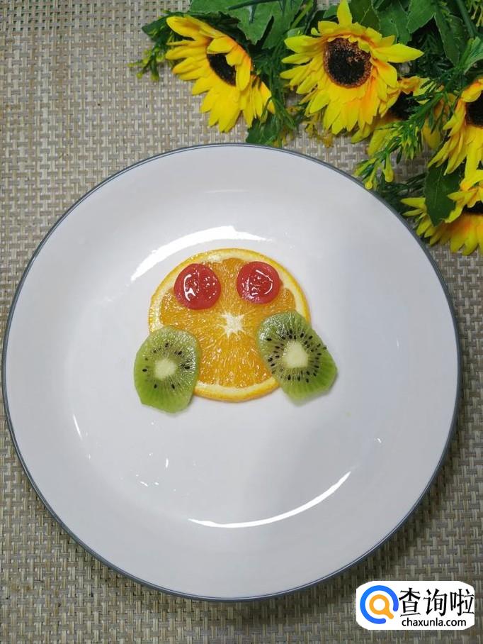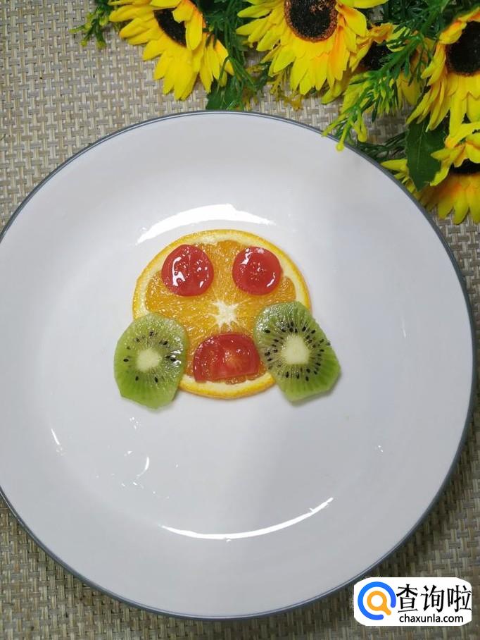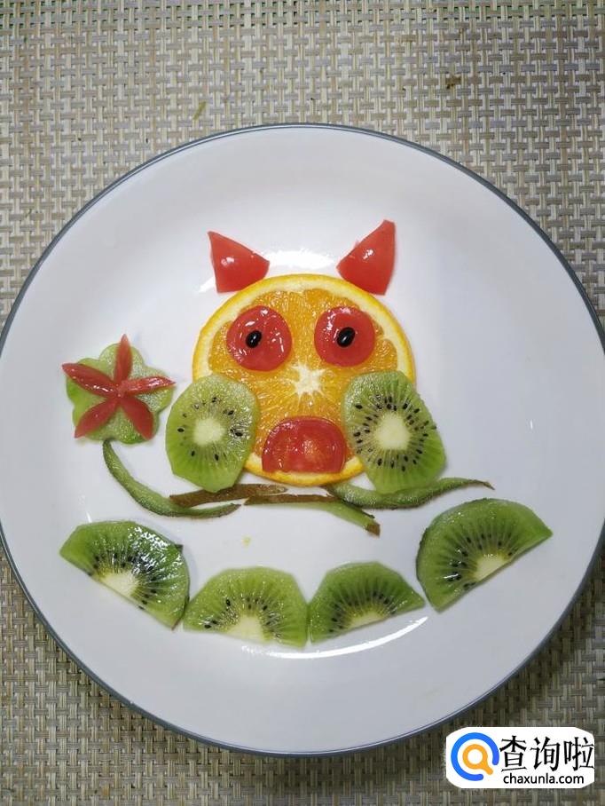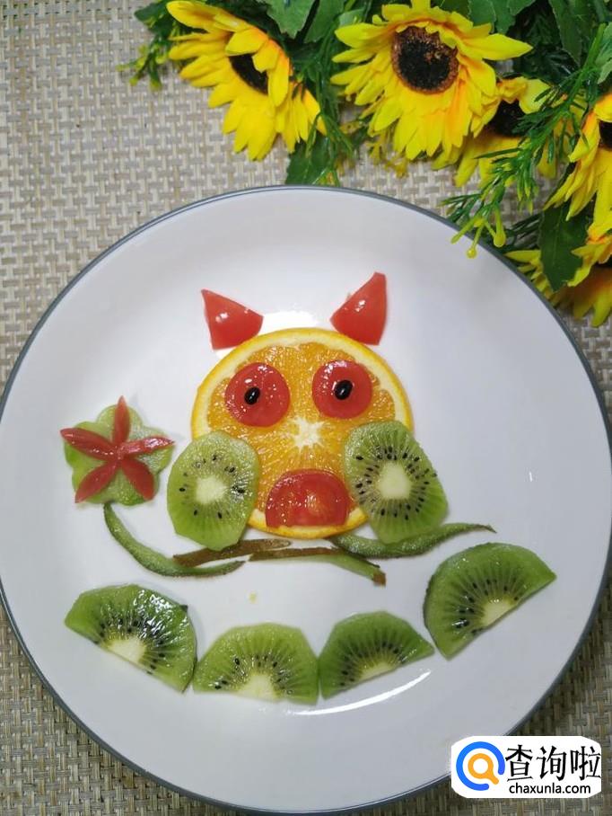 最后用多余的猕猴桃片做成下面的绿草地,还可以用猕猴桃片和圣女果做成一朵小花,搭配一下,非常漂亮,感兴趣的朋友,也可以尝试来做一下。