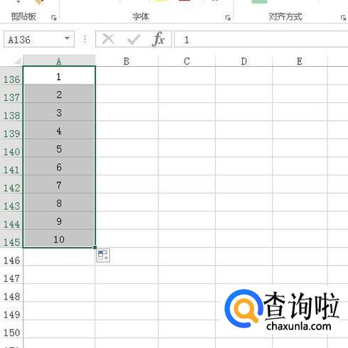 比如,插入从1到10自然数的序号,我们先在A136单元格中输入1