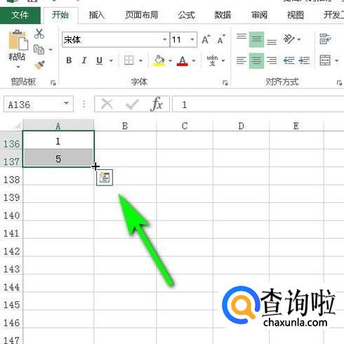 选中A136和A137两单元格,鼠标再放在A137单元格右下角,点住