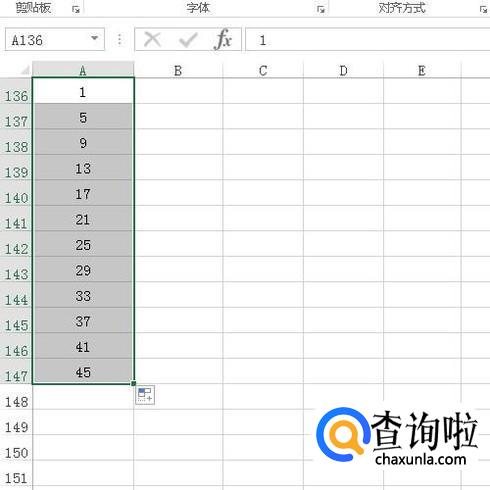 插入跨数字的序号,比如,A136单元格中输入1;在A137单元格输入5