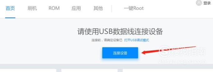 大家都知道我们线刷的第一步就是将手机连接电脑,所以我们先点击刷机精灵首页的“连接设备”与电脑连接。