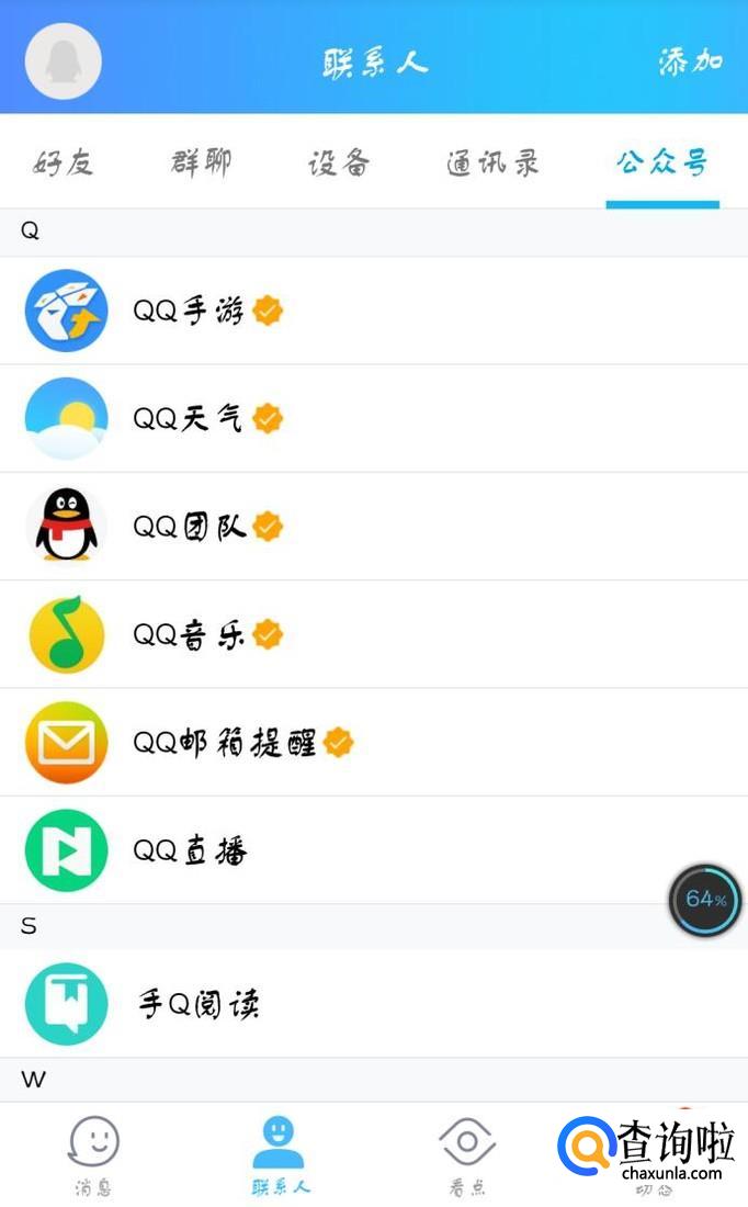 将手机上QQ软件打开并且登录,点击首页页面上的“联系人”。