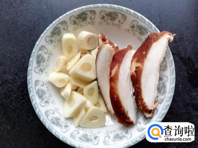 姜、蒜和香菇洗干净,姜切丝,大蒜切粒,香菇切片