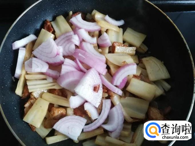 洋葱下入锅中翻炒,炒至洋葱断生,撒入适量的盐调味