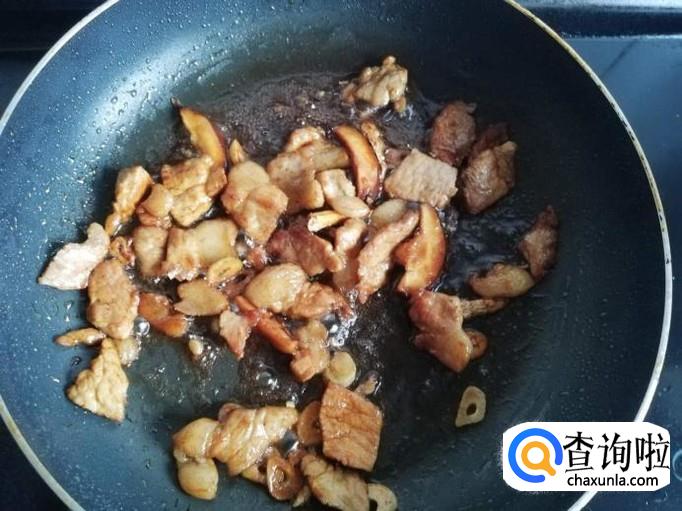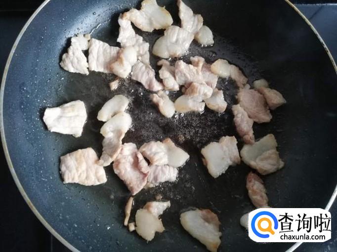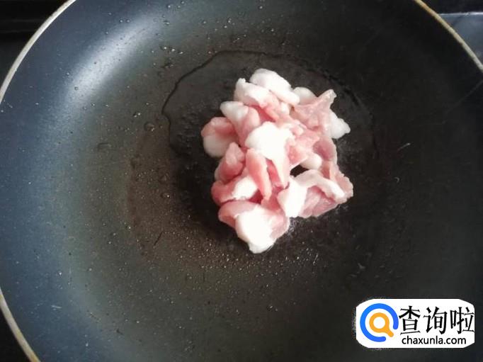 锅烧热,加入少许油,凉油将肥肉下入锅中煸炒