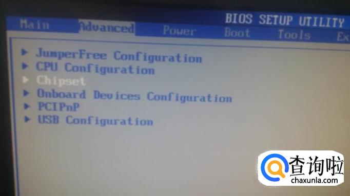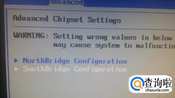 多次重启仍看不到,就重新开机时按DEL键进入主板BIOS,如图选择“Advanced”菜单下的“chipset”选项,进去选第二项(南桥设置)。