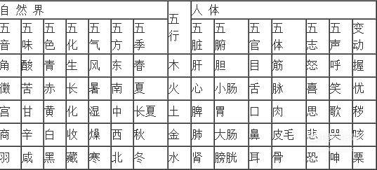 3.事物属性五行系统归类表(表里面的内容必须全部牢记!)