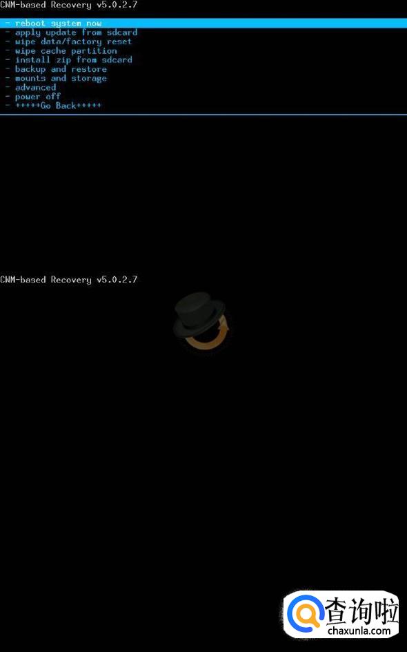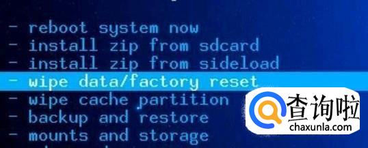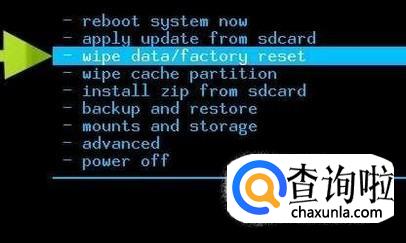 在接下来显示的页面中选择wipe cache partition和wipe date/factory reset,借此清除手机中的缓存和数据