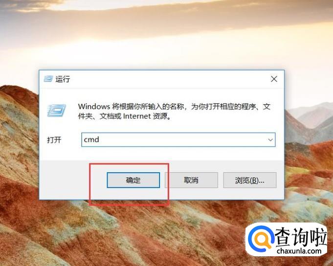 这里,可以首先在桌面上按下Windows徽标键+R键,打开运行窗口命令,输入“cmd”,打开命令行窗口页面。