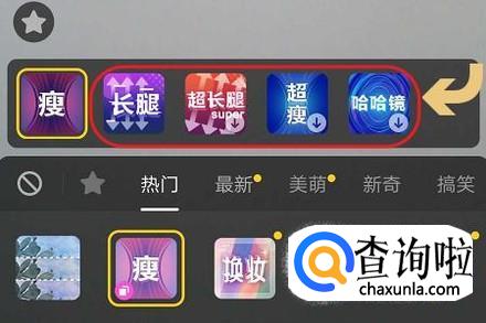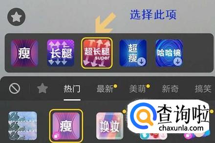 我们可以看出抖音已经有之前的长腿变成了“长腿”、“超长腿”这两个针对长腿的特效,如果想要拍出又细又长的可以选择“超长腿”这一项哦,如图所示;