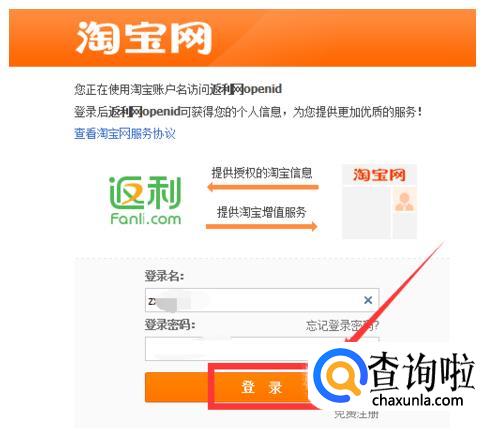 我以淘宝账号为例,输入淘宝账号和密码,点击“登陆”。