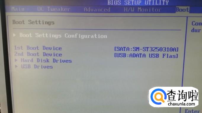 可以看到是硬盘为第一启动设备,U盘第二,我们进入第一启动设备设置