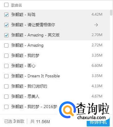 接着选择我们想要的歌曲并点击传到手机,如下图所示。