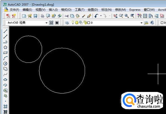 首先我们打开CAD软件,任意画两个圆做演示,我们演示画一条直线与这两个圆都相切。