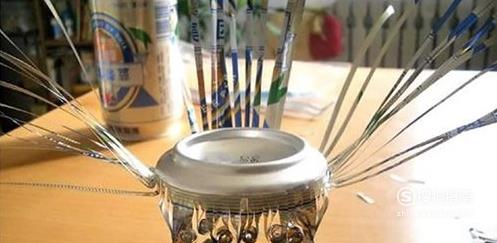 需要准备:易拉罐、剪刀、钳子、镊子等,然后把瓶口剪去。