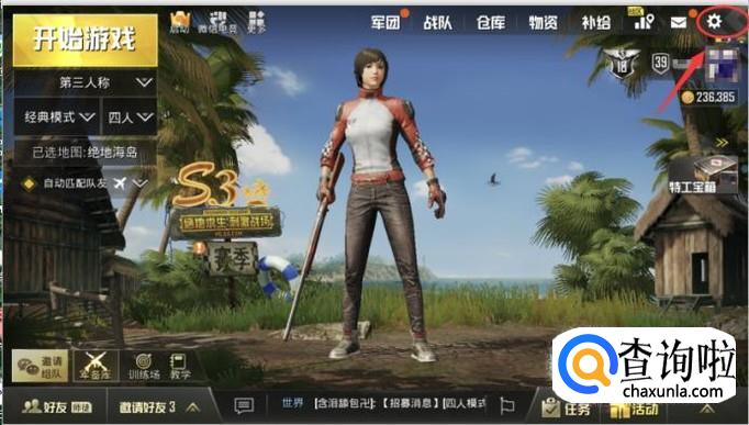 打开吃鸡游戏,进入主页面之后,如图点击右上角设置的图标