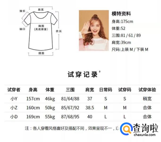 根据自己的身高体重来选择适合自己的尺码,有些店铺的详情页还会给出模特的身高体重,还有试穿记录,让你更好选择,例如如图1所示。