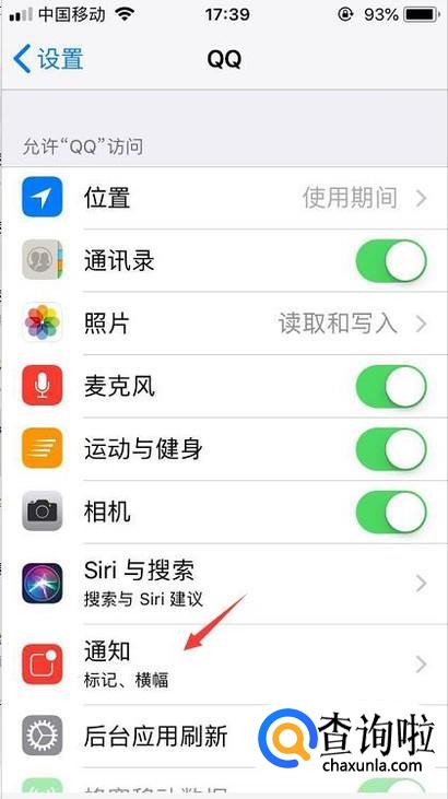 接着我们会看到所有关于qq应用的设置,点击一下通知的选项。