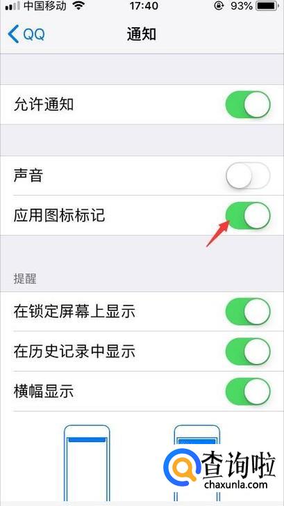 最后我们只需要把应用图标标记关闭,这样qq图标就会自动在通知栏里隐藏了。