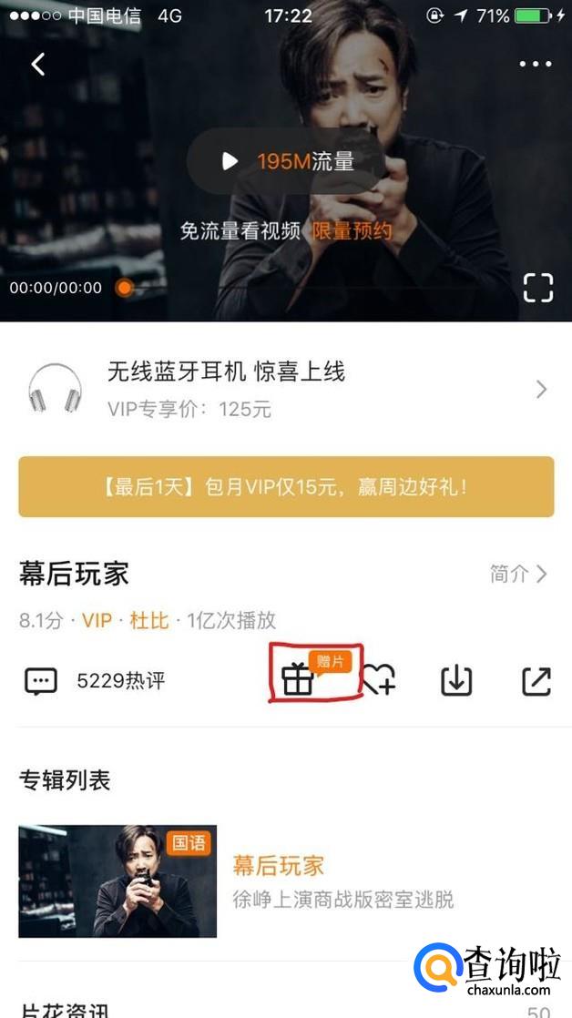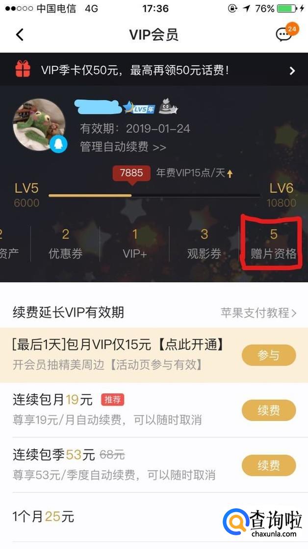然后我们可以看到赠片资格,点击赠片资格,如图