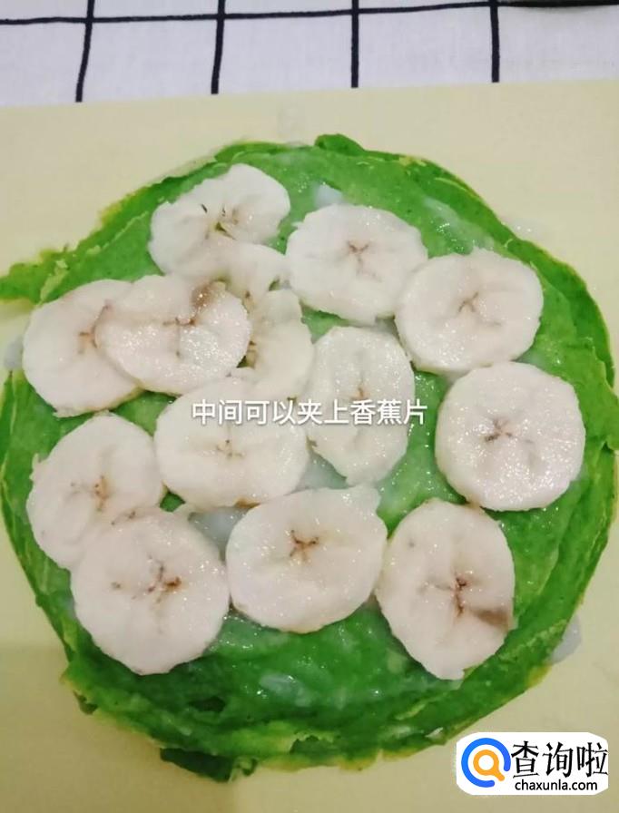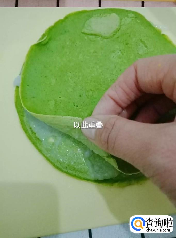 然后盖上一层菠菜饼,如下图所示。重复以上同动作就可以了。
