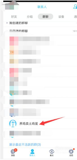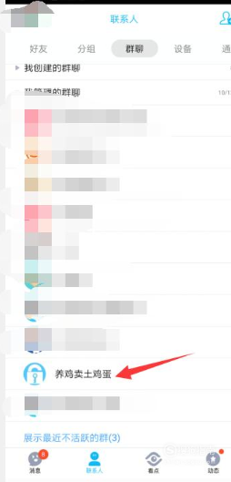 1、打开手机QQV8.2.6版本,点击界面下方的联系人,并选择一个自己加入的群。