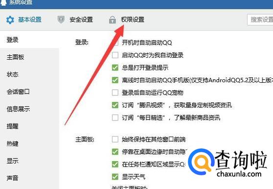 进入之后,点击“权限设置”,进入下一页面,如图所示。