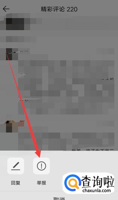 进入之后,点击一下自己想要举报的评论,选择“举报”,如图所示。