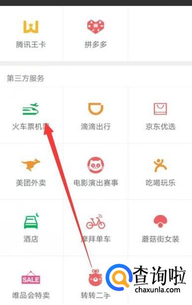 进入之后,点击“火车票机票”,进入下一页面,如图所示。