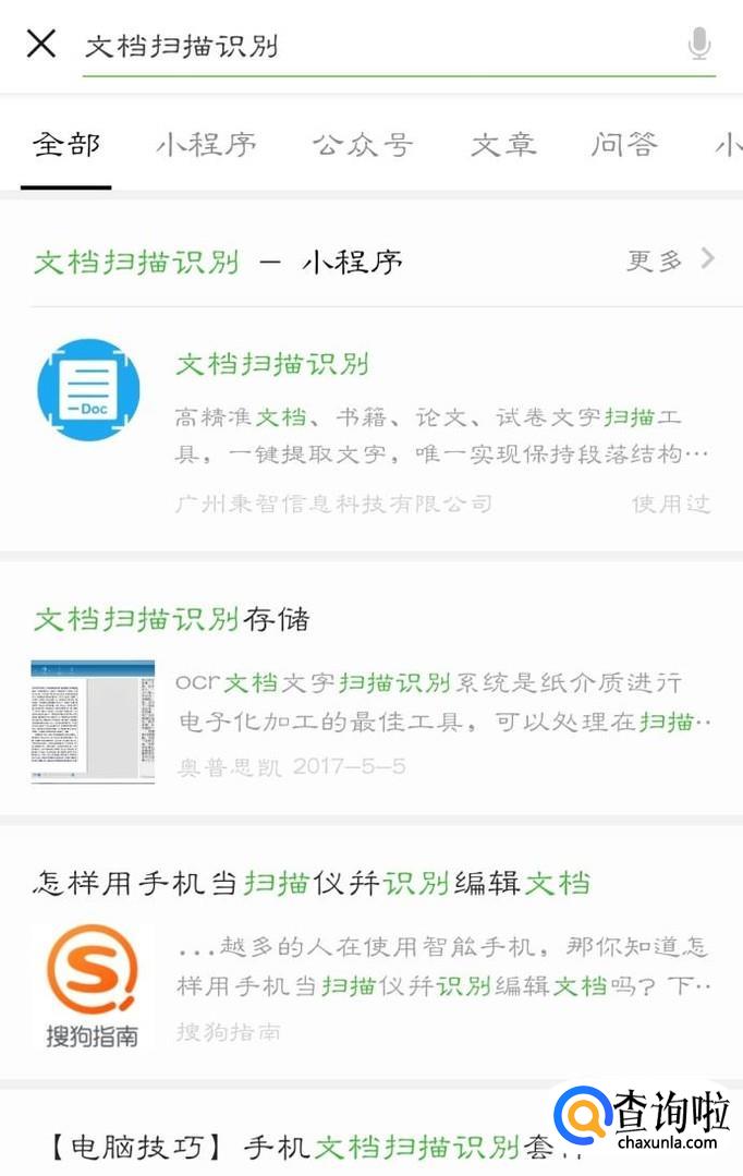 然后输入文档扫描识别,并点击进入小程序。