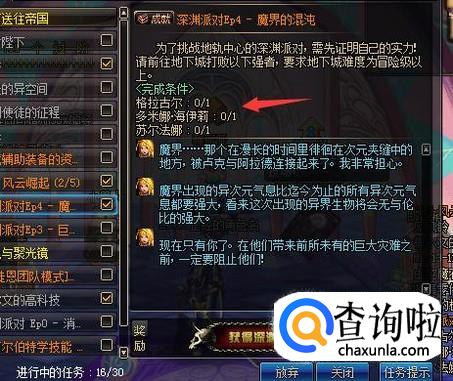 带上需要做任务的86级以上的小号进图完成相应深渊任务即可。