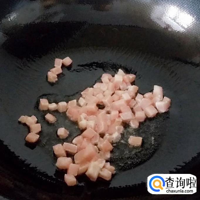 锅中倒入食用油15克左右,油八分开放入鸡肉煸炒,鸡肉变色,放入葱,姜爆香。