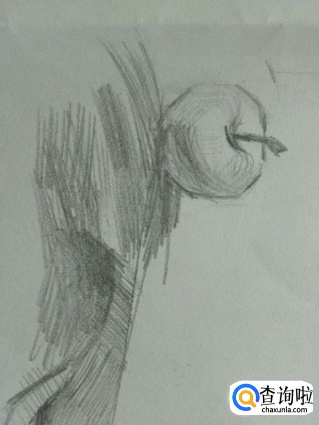 铅笔最好自己用刀削好,必要去用卷笔刀削,卷笔刀削出来的笔前段总是极细的,用起来不顺手,练苹果这样的实物的时候,最好先框形,即先用几根线条将物体的边缘框出来。