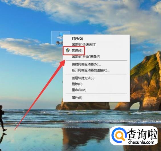 找到此电脑,右击一下,点击“管理”,如图所示。
