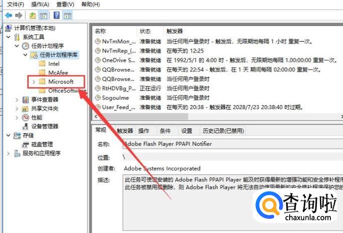 点击”任务程序库下“下的”Microsoft",进入下一页面。